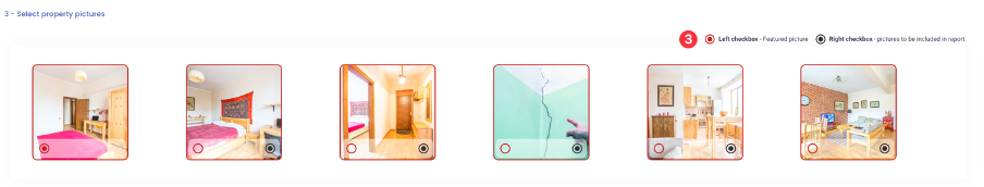* If you opt for one of the target property or building pictures, you can select it with a left click in their respective sections. Only one picture may be selected (3)