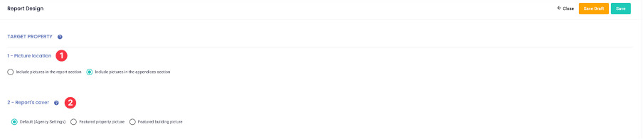 * &#x20;In the picture location section, you can choose to either put the property and comparable pictures in the main report or in the report appendices (1)